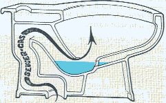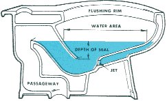 A toilet is a siphon. When you pull the handle, 1.5 gallons of water dump into the bowl at once. This causes water to fill up a tube with liquid that was formerly filled with air. That full tube of liquid then wants to pull all of the water in the bowl with it to the sewer. With the liquid gone, the tube fills with air again, and we break the siphon. A filler than fills the toilet bowl back up to the level high enough to catch feces, but not high enough to flush.